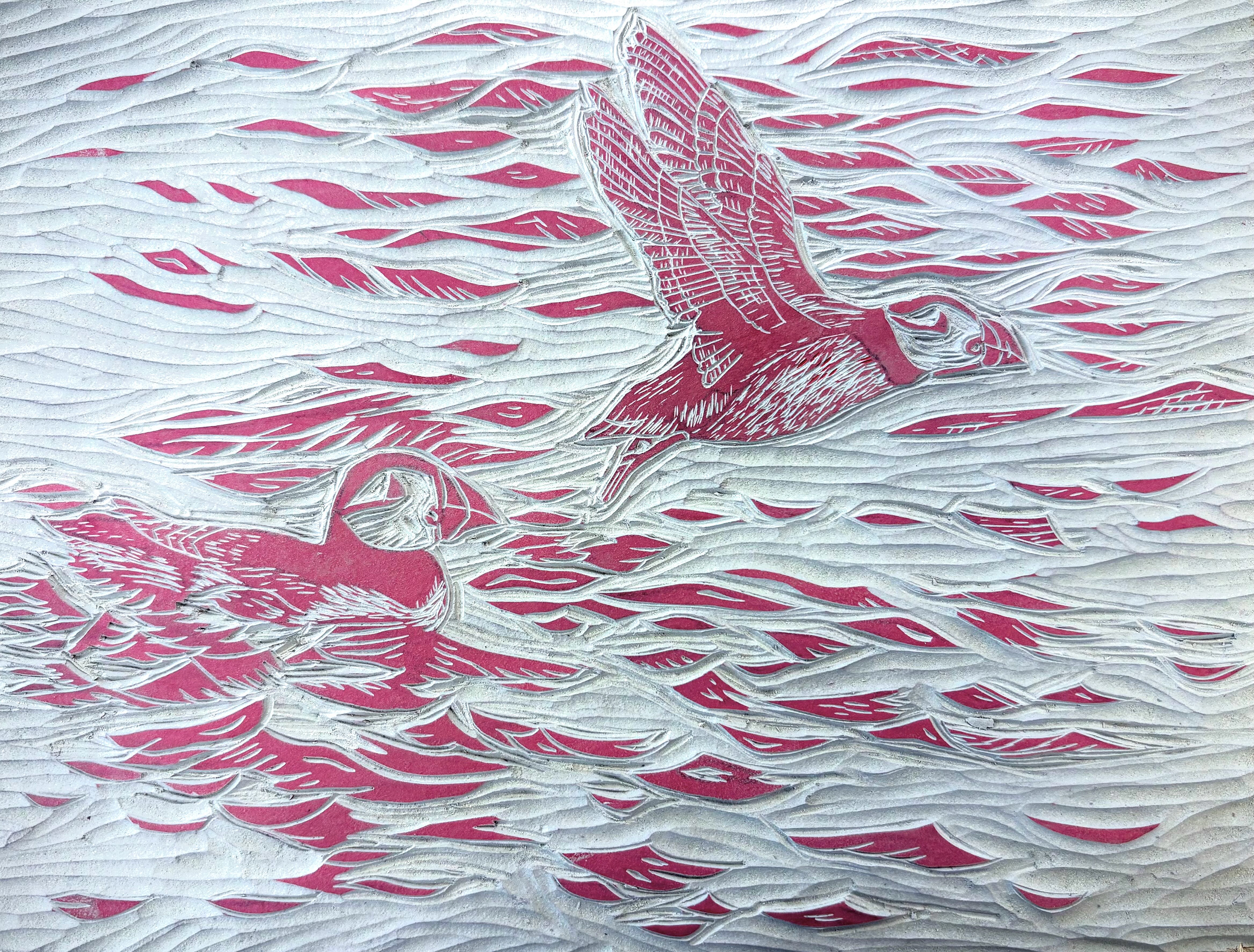 Elaine Bentley is a graphic designer and artist working on a new series of linocut prints inspired by UK wildlife. She has particular focus to bring attention to creatures dwindling in number, threatened by extinction.